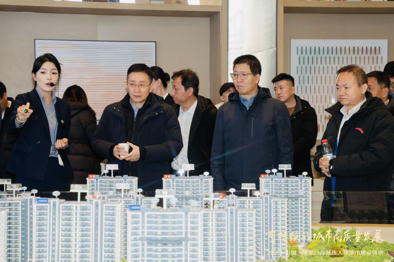 随后,团队来到了中粮祥云国际小镇。作为大悦城控股打造的环京百万平方米生态教育大盘,这个项目代表了市场力量对张家口城市发展的实践与期许。项目现场工作人员详细介绍了其“健康生态型学府人文居住社区”的定位,以及从1.0到3.0产品迭代的逻辑——从大胆引入落地窗改善北方住宅采光通风,到打造全景示范区提升交付透明度,再到第三代产品提出“主动健康、场景生活”的长期主义主张。调研团成员认真参观了实景园林与样板间,对“好房子”如何与本地气候、资源结合有了具象感知。