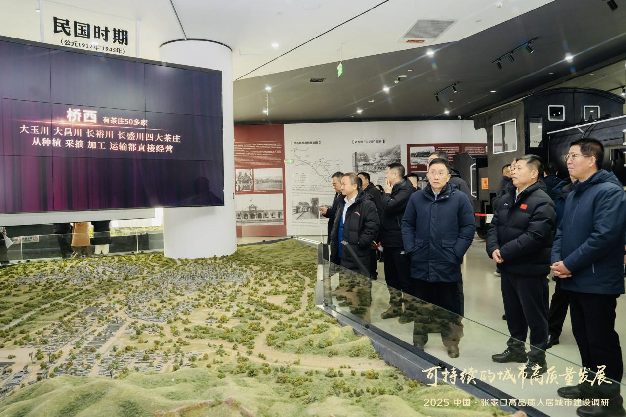 12月18日下午,调研团队的首站选在了张家口市城市规划馆。在这里,张家口从“东方人类故乡”到“冬奥之城”的厚重历史与跨越式发展脉络,通过现代化的展陈手段清晰呈现。规划馆不仅展示了城市的过去与现在,更描绘了以“首都两区”建设、京张体育文化旅游带、可再生能源示范区等国家战略为支撑的未来发展框架。团队成员仔细观看,不时交流,对张家口的全域空间布局与战略定位有了直观而立体的认识。